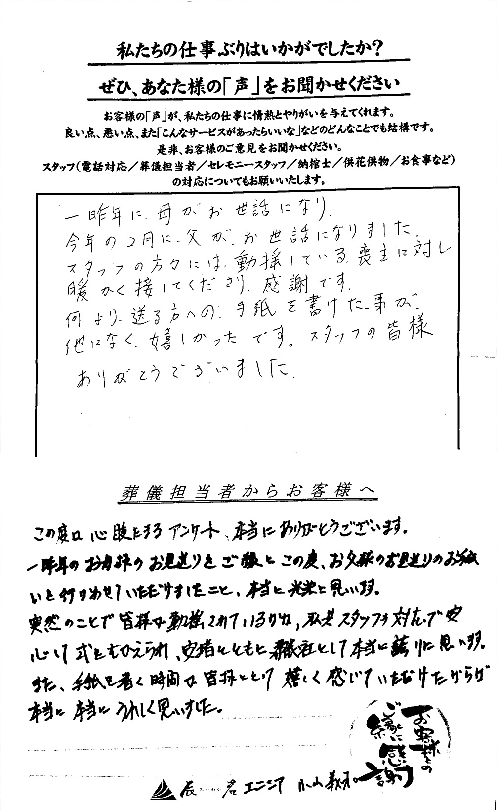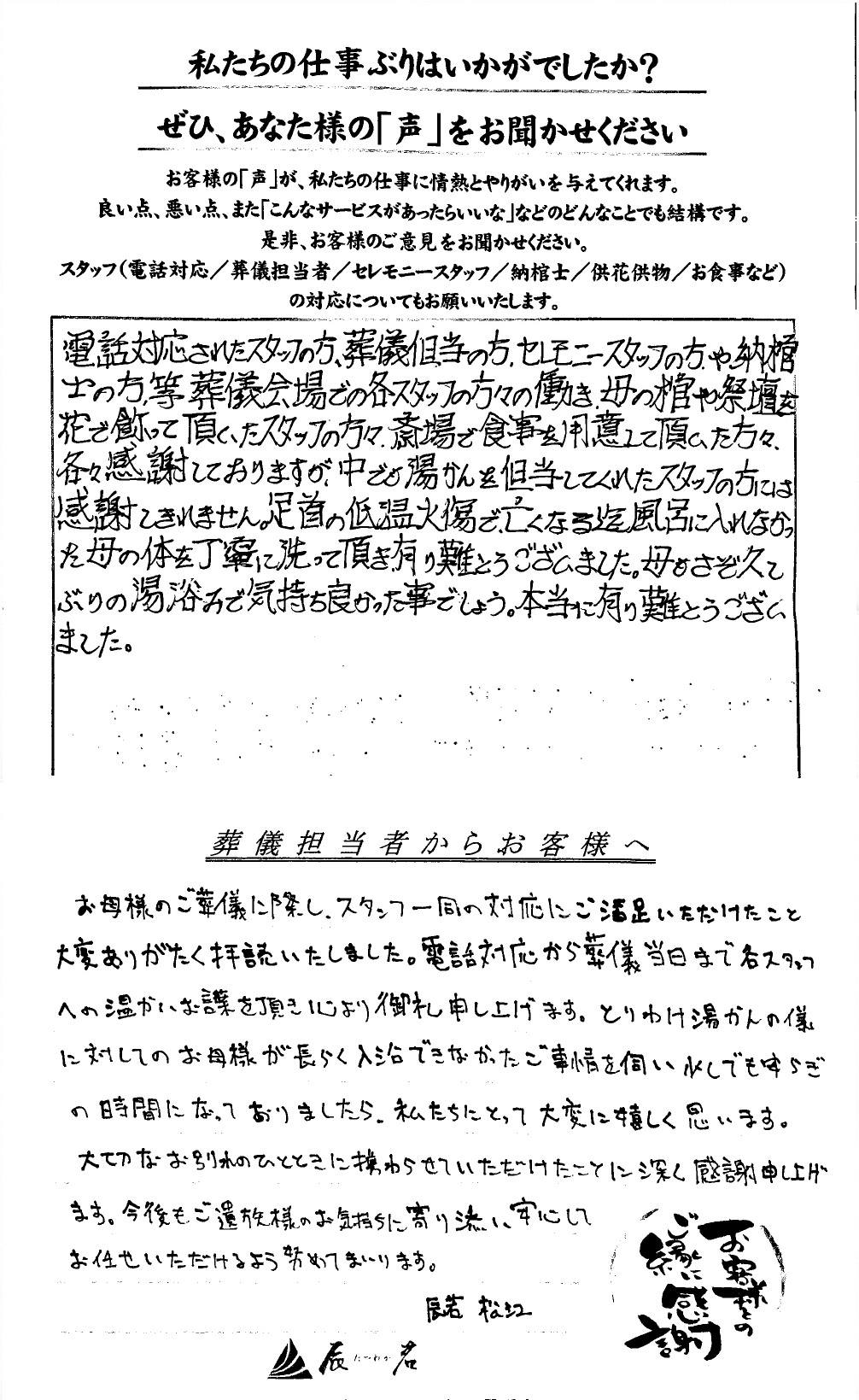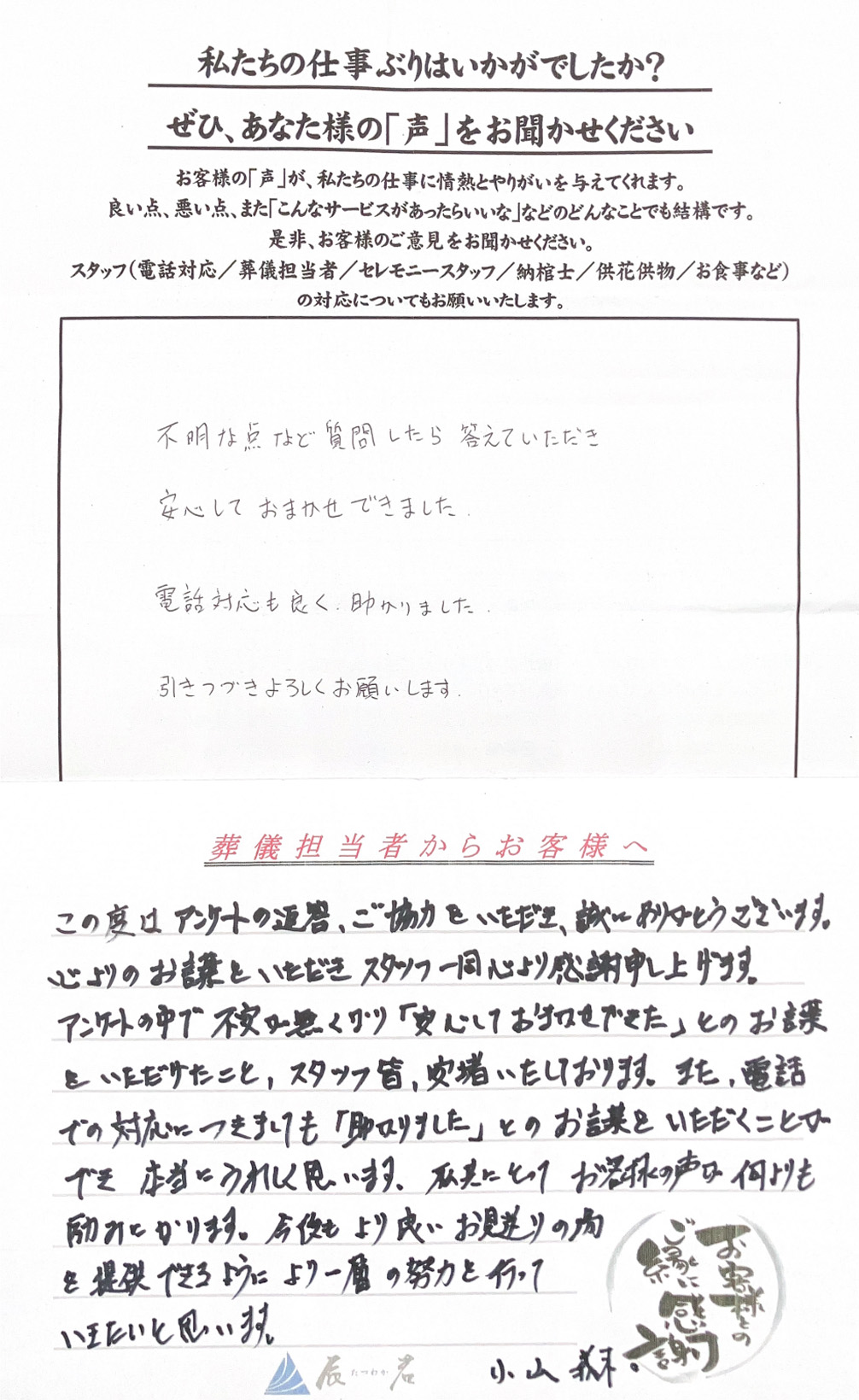 辰若・エニシアはご葬儀後のサポートやサービスも責任を持って行います。