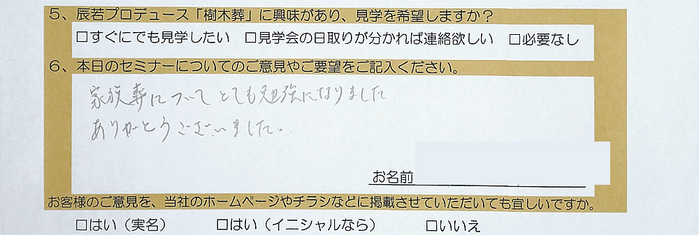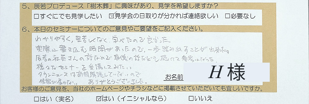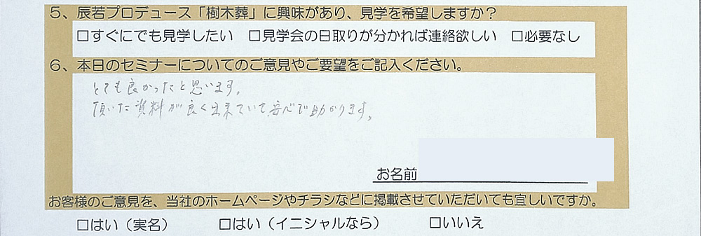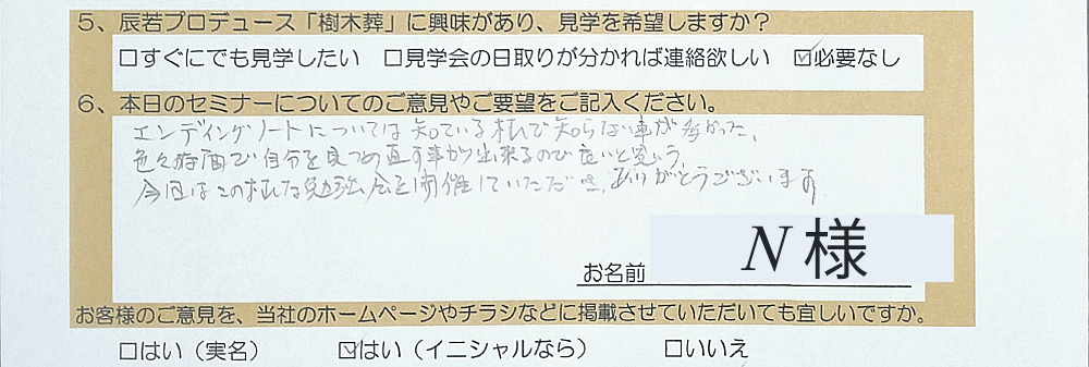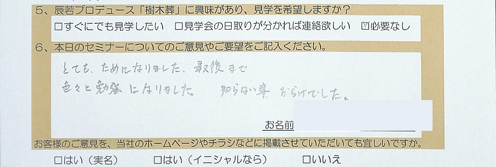 辰若の社員さんの話なので、葬儀の話なども聴けて参考になった。