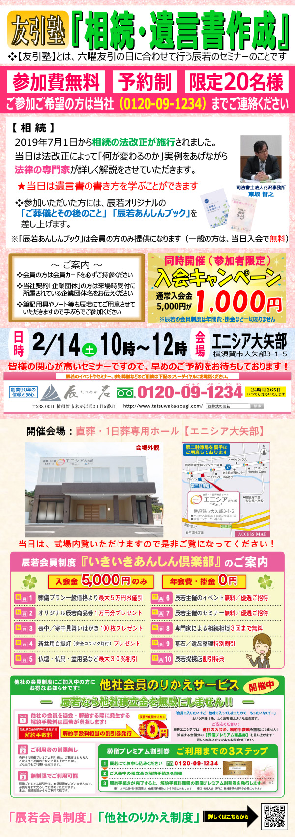 【ご予約はこちら】 [辰若葬儀社] 電話:0120-09-1234