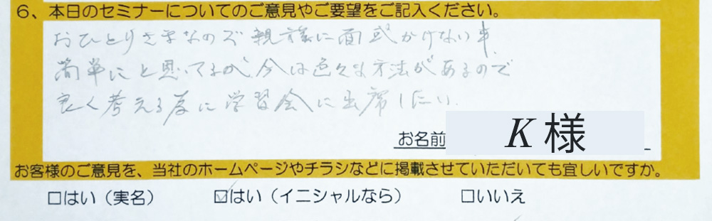 おひとりさまなので親族に面倒かけない事、簡単にと思ってるが今は色々な方法があるので、良く考える為に学習会に出席したい。