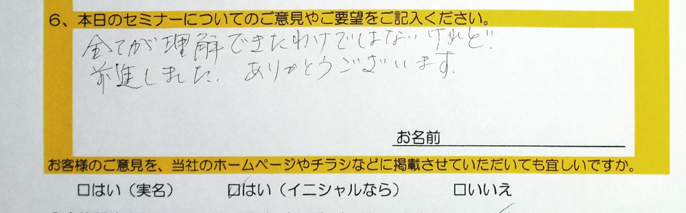 資料が充実していて良かった 。説明がわかりやすかった 。ありがとうございました。
