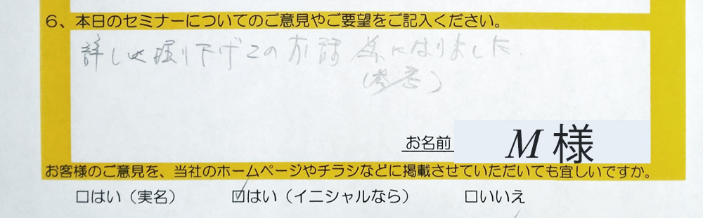 先月は、多くの方にご参加いただき誠にありがとうございました。皆様が真剣に耳を傾け、ご自身の将来やご家族について考えられているお姿が非常に印象的でした。