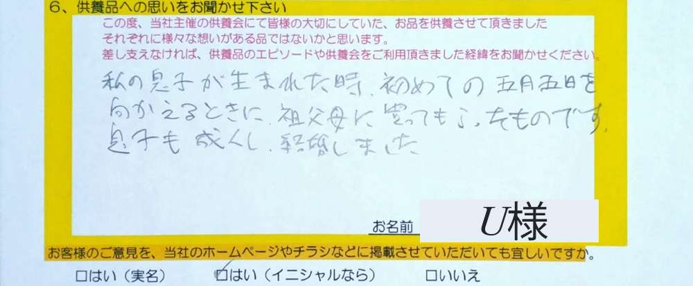 参加者の声: 「長年家族を見守ってくれた人形なので、最後にご供養ができて心が軽くなりました」といったお声をいただき、私たちスタッフにとっても温かな時間となりました。